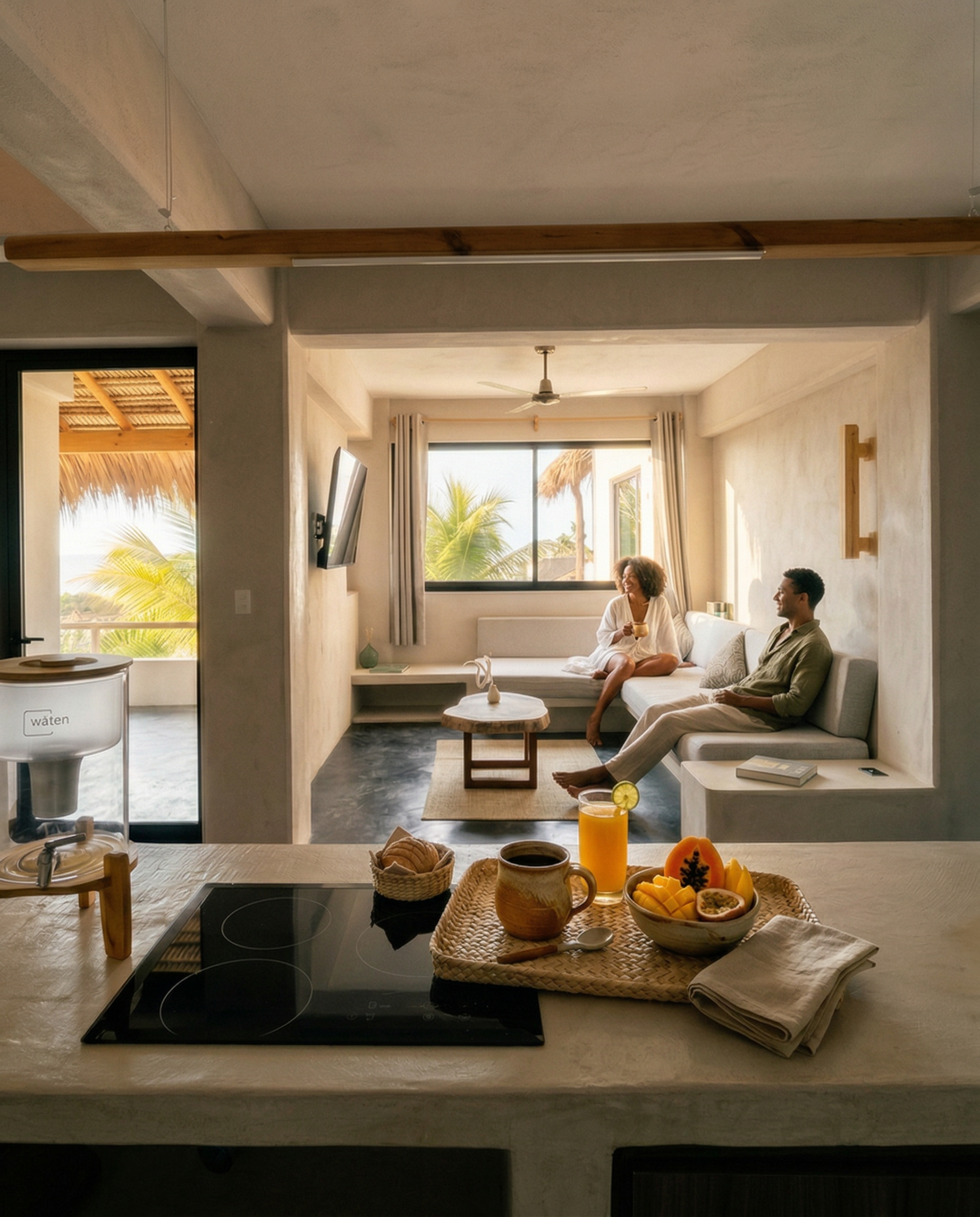 Casa Leah offers 15 exclusive loft suites designed for travelers who want the space and freedom of a vacation rental with the service and style of a boutique hotel. Whether you're here to surf, unwind, or work remotely — you'll have room to breathe and a home base that feels like yours.
